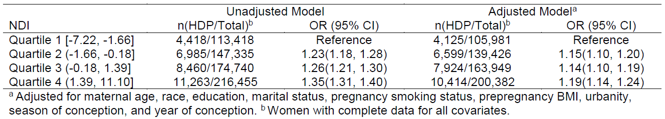 - Vinikoor-Imler et al. (2012) reported a positive association between neighborhood deprivation and HDP in the US.