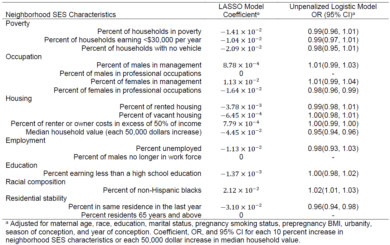 Individual neighborhood SES characteristic predictive of HDP is unknown