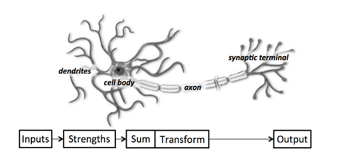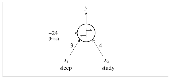- like linear regression, each neuron also has a bias which can be thought of as an input that always has the value 1.0 and it too must be weighted (e.g. a neuron may have 2 inputs, and it requires 3 weights)