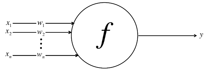 - the weighted inputs are summed and passed through an activation function (also called a transfer function)