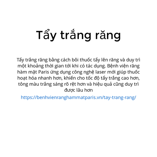 Bệnh viện răng hàm mặt Paris - điểm đến an toàn và chất lượng cao cho những khách hàng muốn phẫu thuật hàm hô móm và phẫu thuật thẩm mỹ https://benhvienranghammatparis.vn/ https://benhvienranghammatparis.vn/tay-trang-rang/