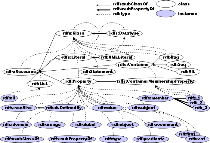 - tout est ressource (de la classe rdfs:Resource) : si x p y alors x rdf:type rdfs:Resource