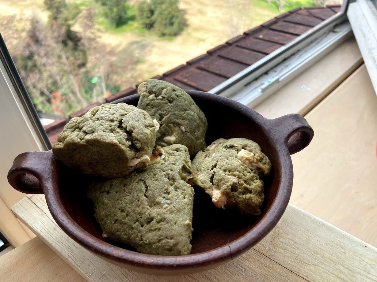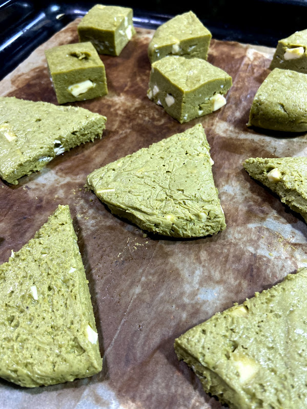 Scones de chocolate blanco y matcha.