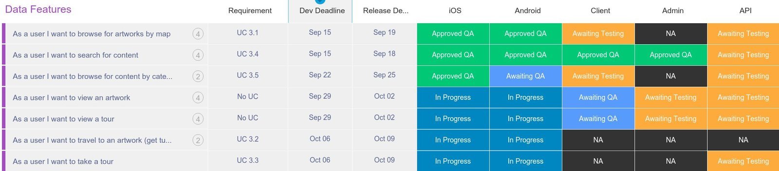- Multiple features due at a time, requiring good time-management from the teams