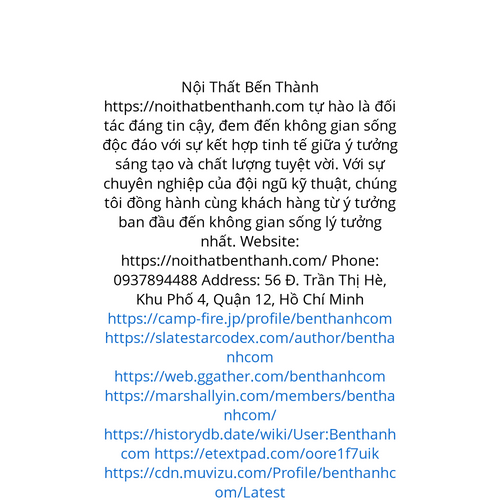 Website: https://noithatbenthanh.com/ Nội Thất Bến Thành https://noithatbenthanh.com tự hào là đối tác đáng tin cậy, đem đến không gian sống độc đáo với sự kết hợp tinh tế giữa ý tưởng sáng tạo và chất lượng tuyệt vời. Với sự chuyên nghiệp của đội ng