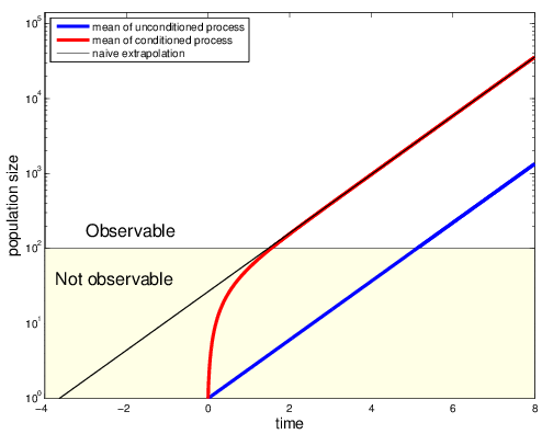 Leads to exponential growth with rate b-c