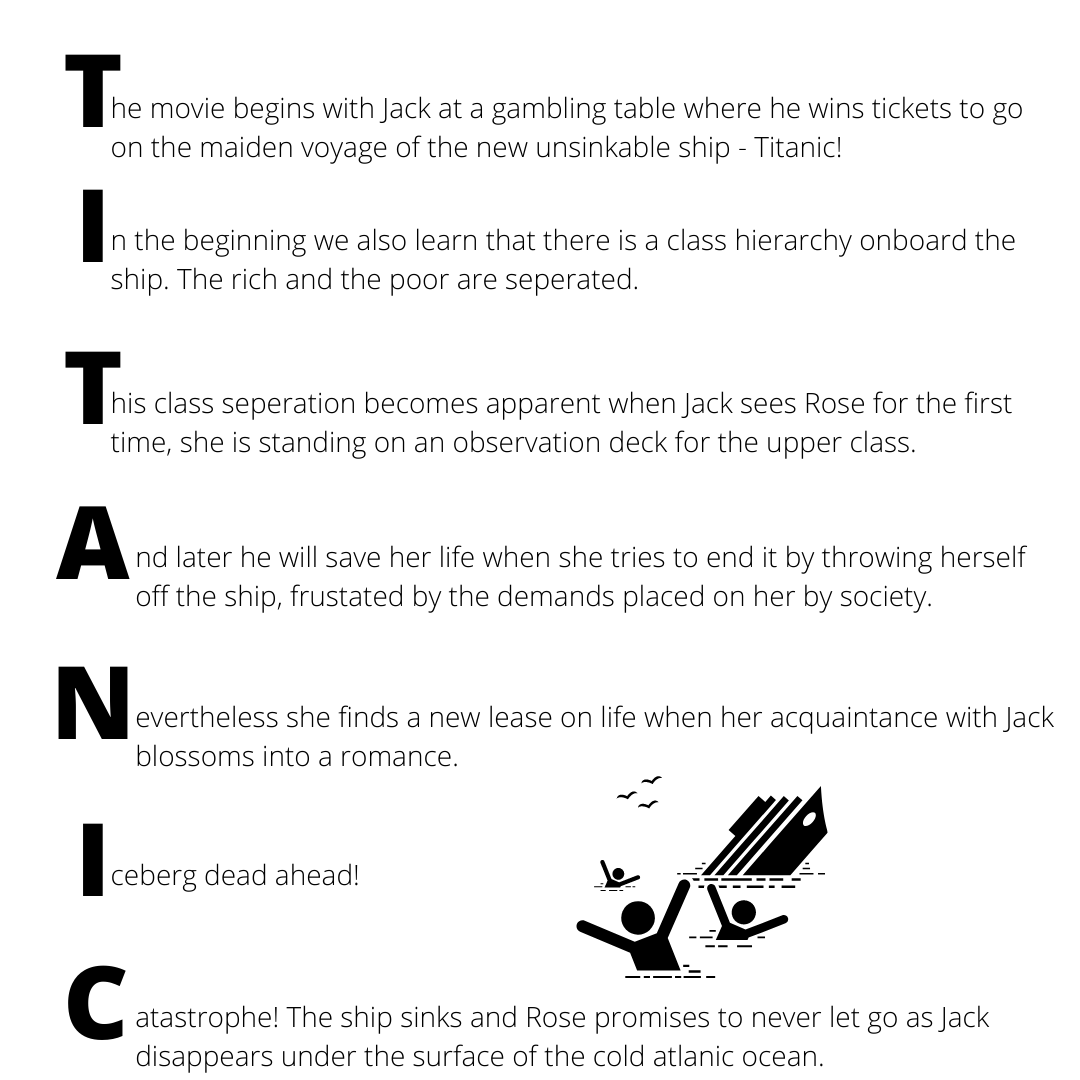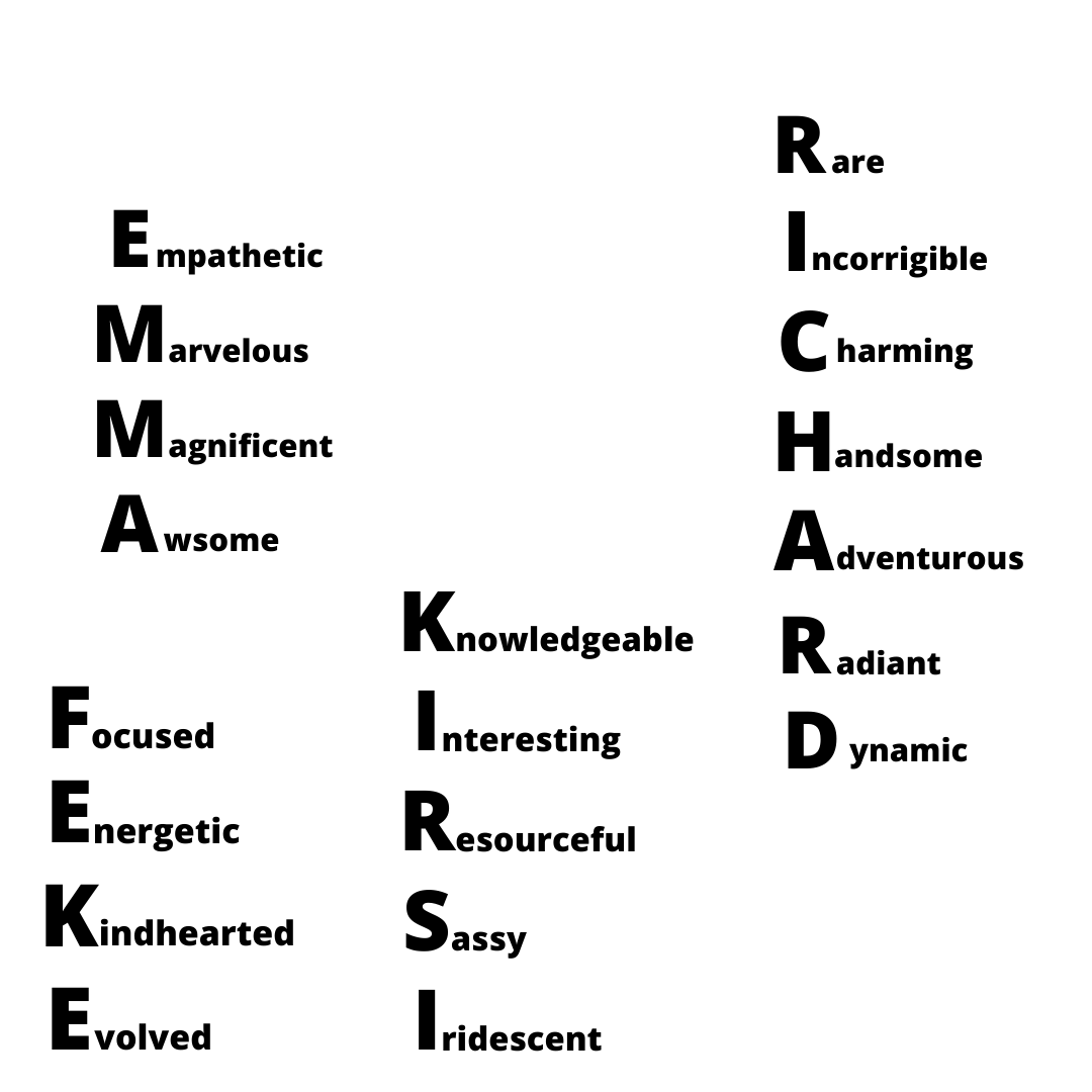 [Acrostic = poem or text with certain letters spelling out a name or message]