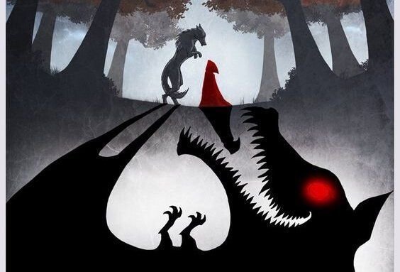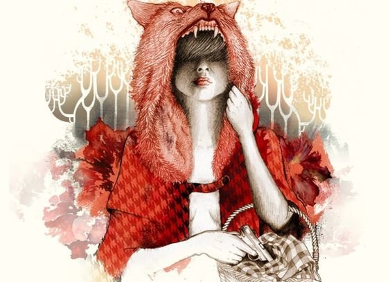 Den röda luvan symboliserar menstruation. När en flicka blivit kvinna måste hon akta sig för män som vill "sluka" henne.