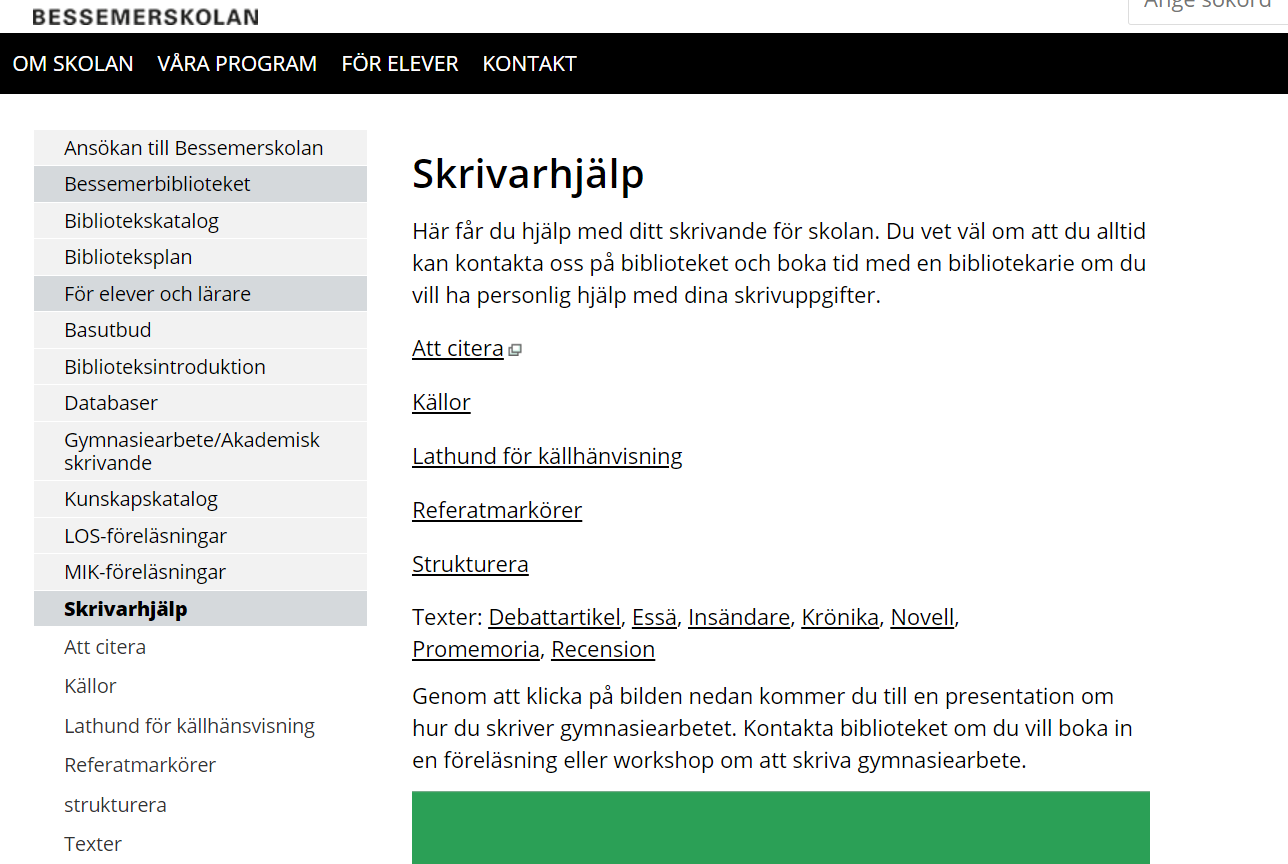 I bibblan kommer det att finnas ett referensbibliotek som ni kan komma in och använda.