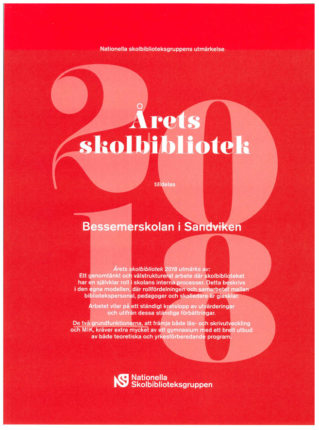 Sedan 2017 arbetar vi med högläsning på Bessemerskolan. Vi har tillsammans med lärarna läst högt för elever från Introduktionsprogrammen, yrkesförberedande program och högskoleförberedande program.