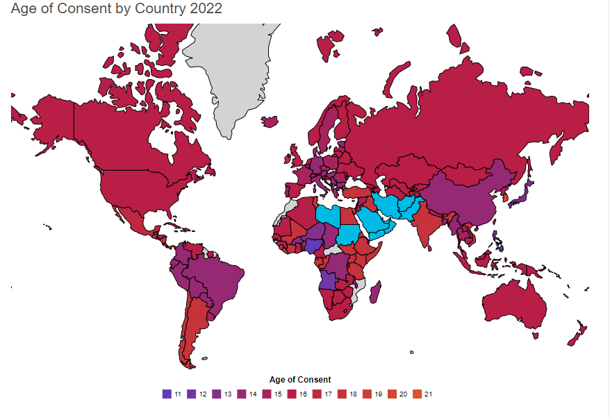https://worldpopulationreview.com/country-rankings/age-of-consent-by-country