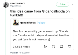 Goodness, that Florida is a weird state. I was unable to hold back to see what Florida Man did on my birthday, so I put in "Florida Man, September 10, 1989."