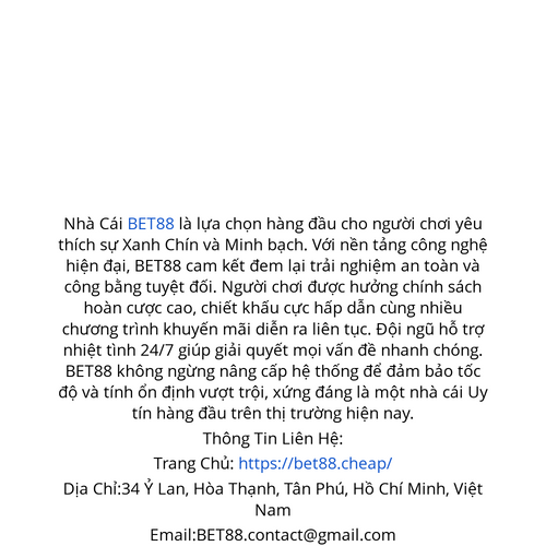 Nhà Cái BET88 là địa chỉ giải trí trực tuyến Uy tín, hoạt động Minh bạch và Xanh Chín. Người chơi được hưởng chính sách hoàn cược cao, chiết khấu hấp dẫn và nhiều khuyến mãi giá trị. BET88 cam kết mang đến trải nghiệm công bằng, an toàn cùng dịch vụ