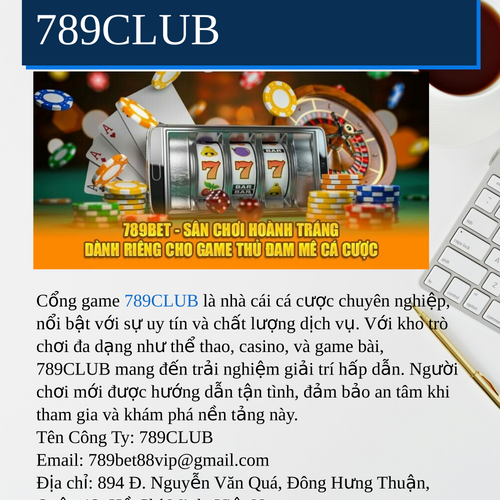 789CLUB là nhà cái cá cược chuyên nghiệp, nổi bật với sự uy tín và chất lượng dịch vụ. Với kho trò chơi đa dạng như thể thao, casino, và game bài, 789CLUB mang đến trải nghiệm giải trí hấp dẫn. Người chơi mới được hướng dẫn tận tình, đảm bảo an tâm k