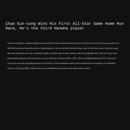 Copy of Chae Eun-sung Wins His First All-Star Game Home Run Race...He's the third Hanwha player