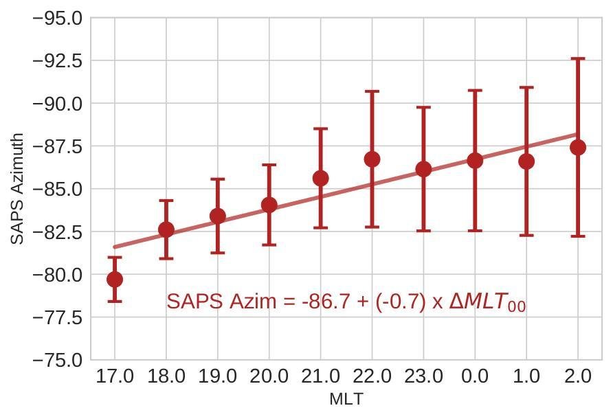 - SAPS velocities increase with geomagnetic activity and during disturbed times increase linearly towards dusk. Consistent with previous studies.