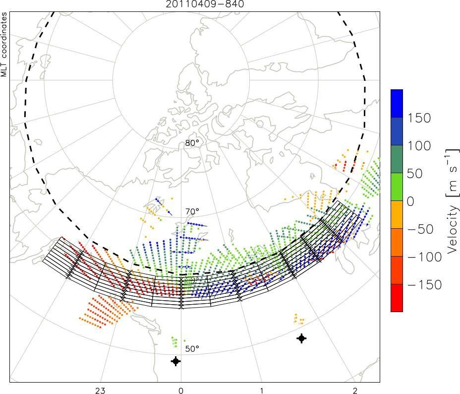 - Define a global grid to get best possible latitudinal resolution. Grid size 0.5 MLAT and 1 MLT.