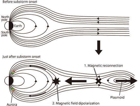 - Magnetosphere transports and processes this energy through different modes of response, sporadically leading to reconfiguration of nightside magnetosphere and flow bursts in the tail.