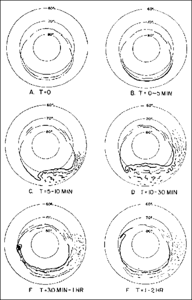 - Brightening expands azimuthally, exhibiting folds and beads during breakup. Then expands poleward within few minutes.