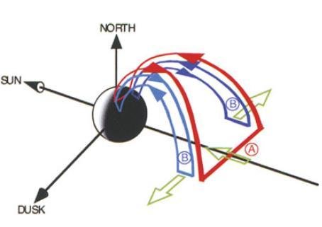 - Magnetic shear is generated as regions outside remain stretched (towards dawn and dusk).
