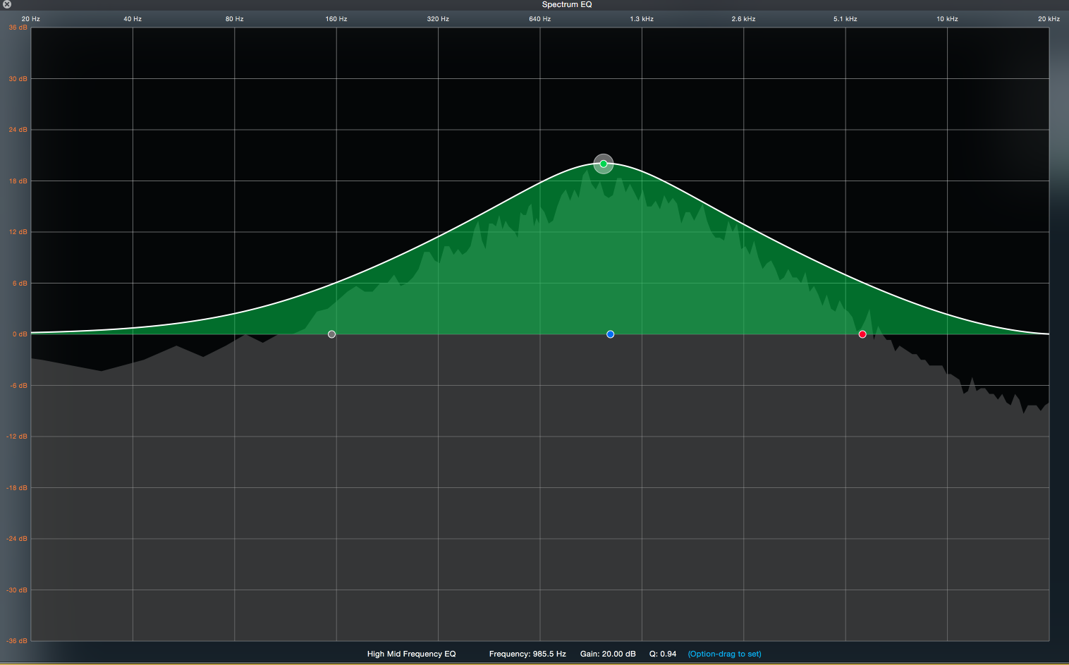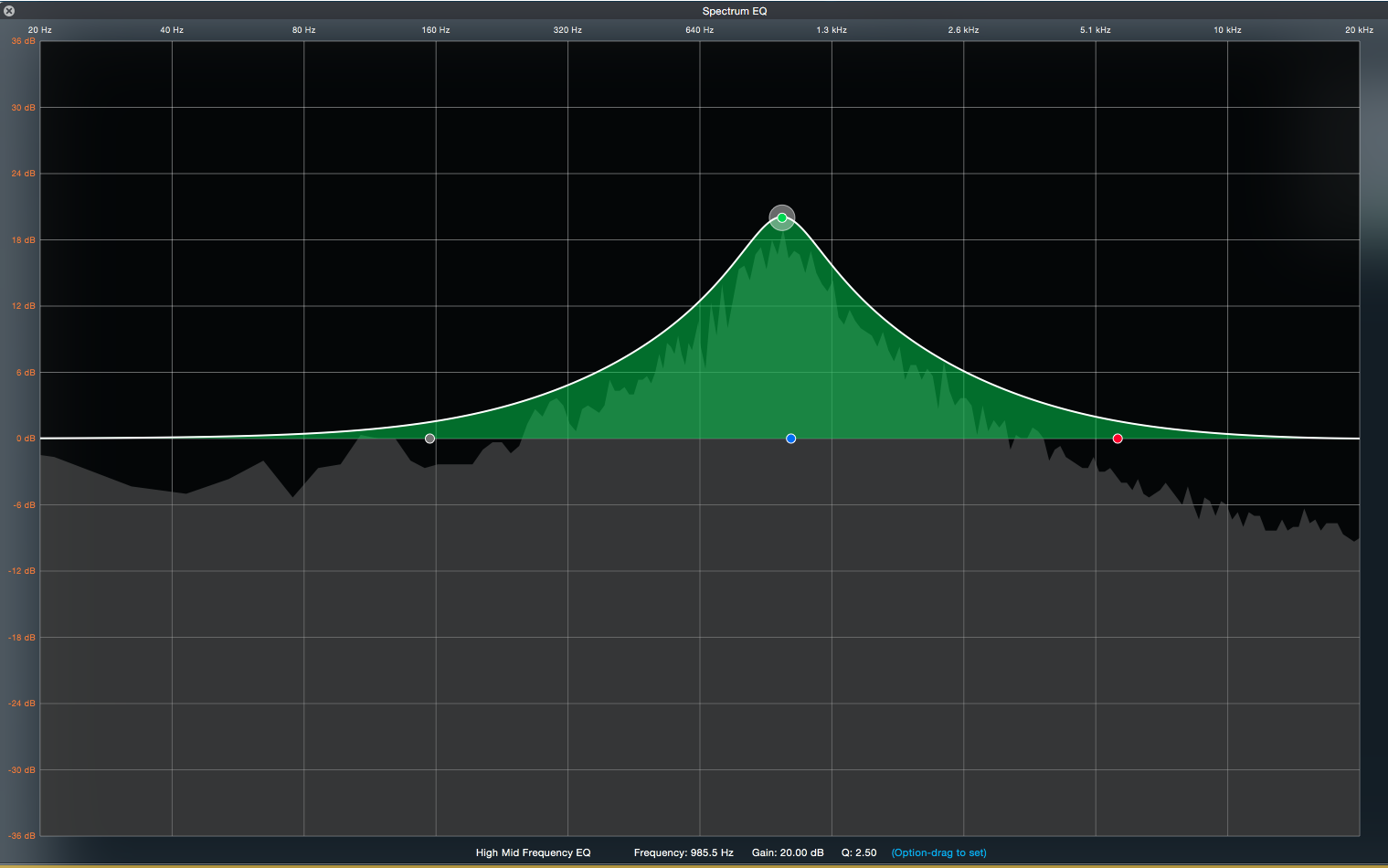 The width– called the bandwidth or 'Q'– makes the bell curve wider or narrower to include more or fewer frequencies around the center frequency.