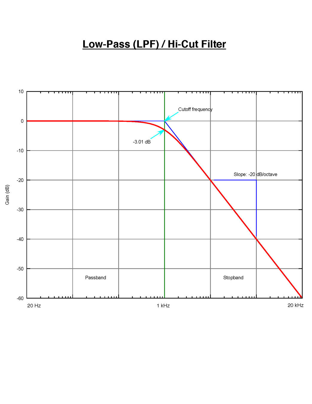 A filter removes a set of frequencies. It cannot add (boost) frequencies, only eliminate them. The frequency that determines where the filter starts to cut is called the cut-off frequency. Filters also have a slope for how steep they act, which can sometimes be changed.
