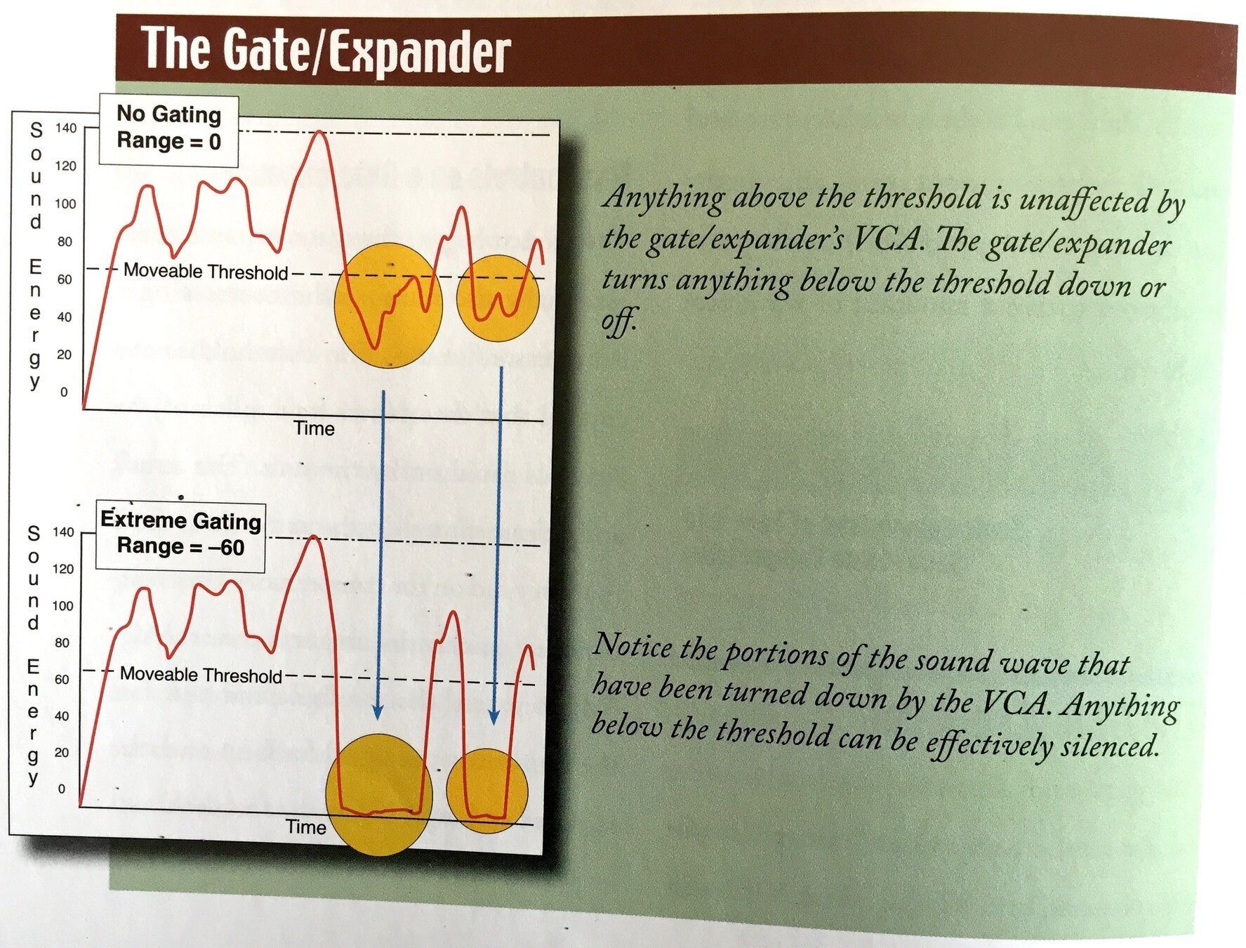 In its simplest form, the gate silences any signal that is below its threshold.