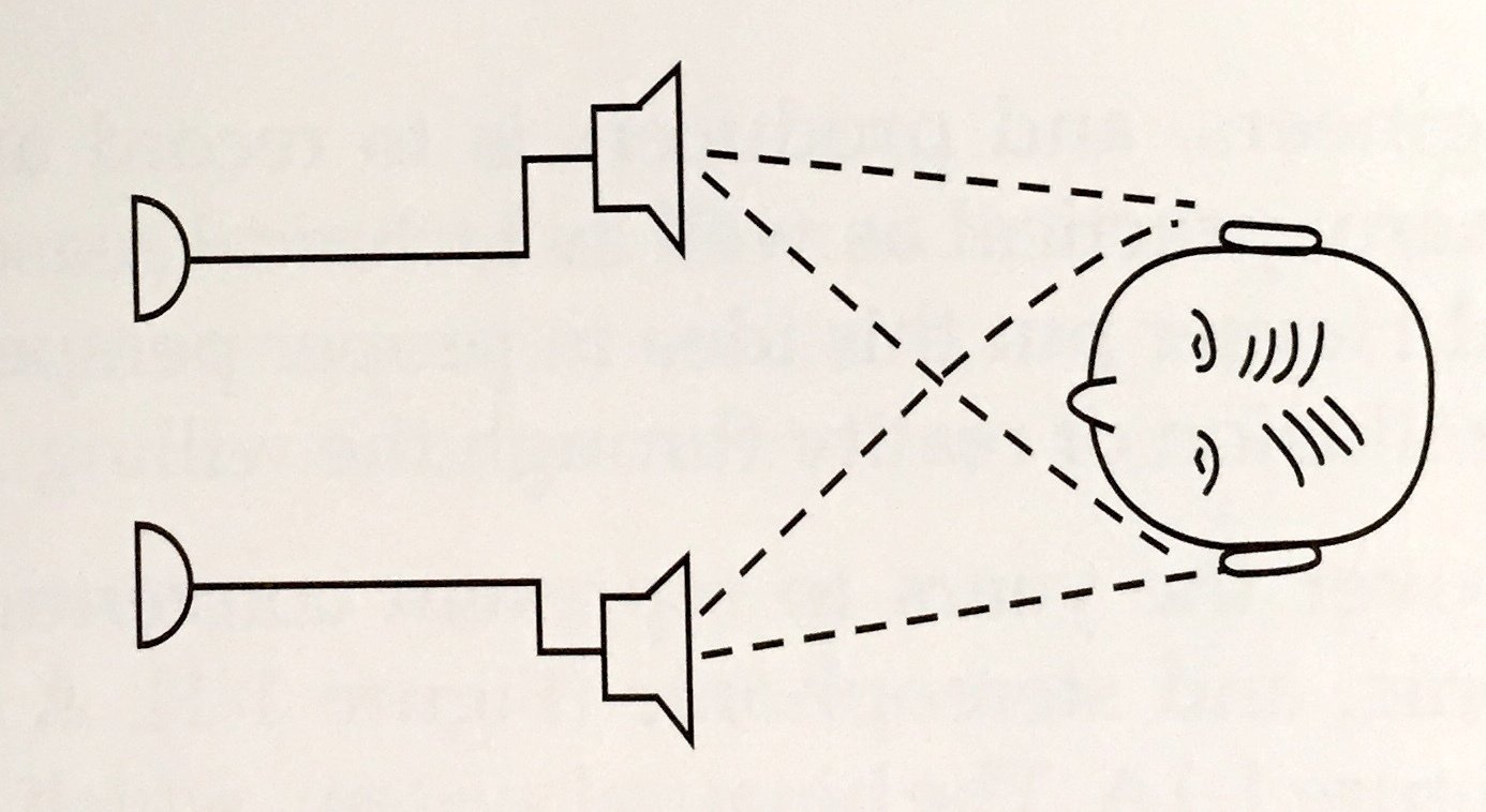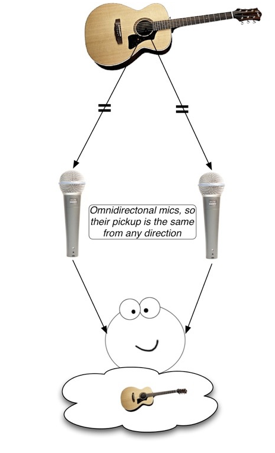 Differences between two mics/speakers create a left/right stereo soundstage.
