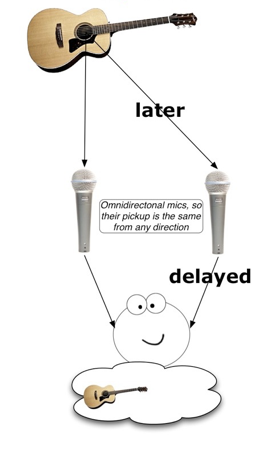Potential for mono-compatibility problems, as sound arrives with different phase at each mic