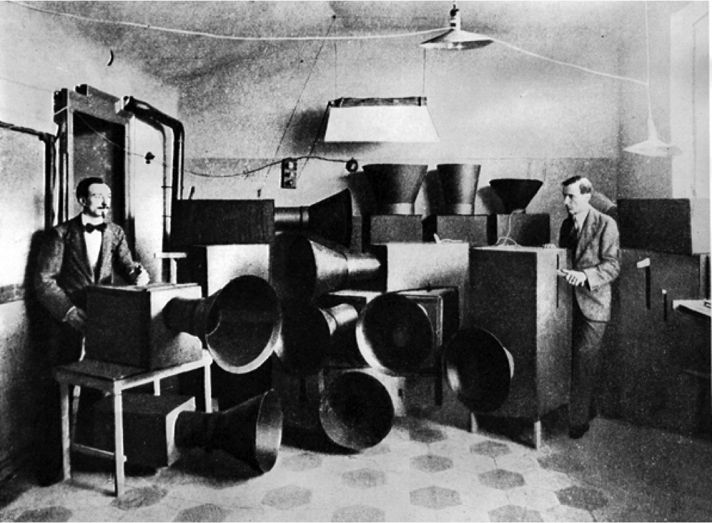 This musical evolution is paralleled by the multipication of machines, which collaborate with man on every front...This evolution towards "noise sound" was not possible before now. The ear of an eighteenth-century man could never have endured this discordant intensity...