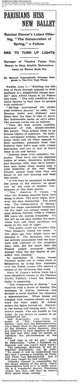 '...the wise elders are seated in a circle and are observing the dance before death of the girl whom they are offering as a sacrifice to the god of Spring in order to gain his benevolence,' says Stravinsky."