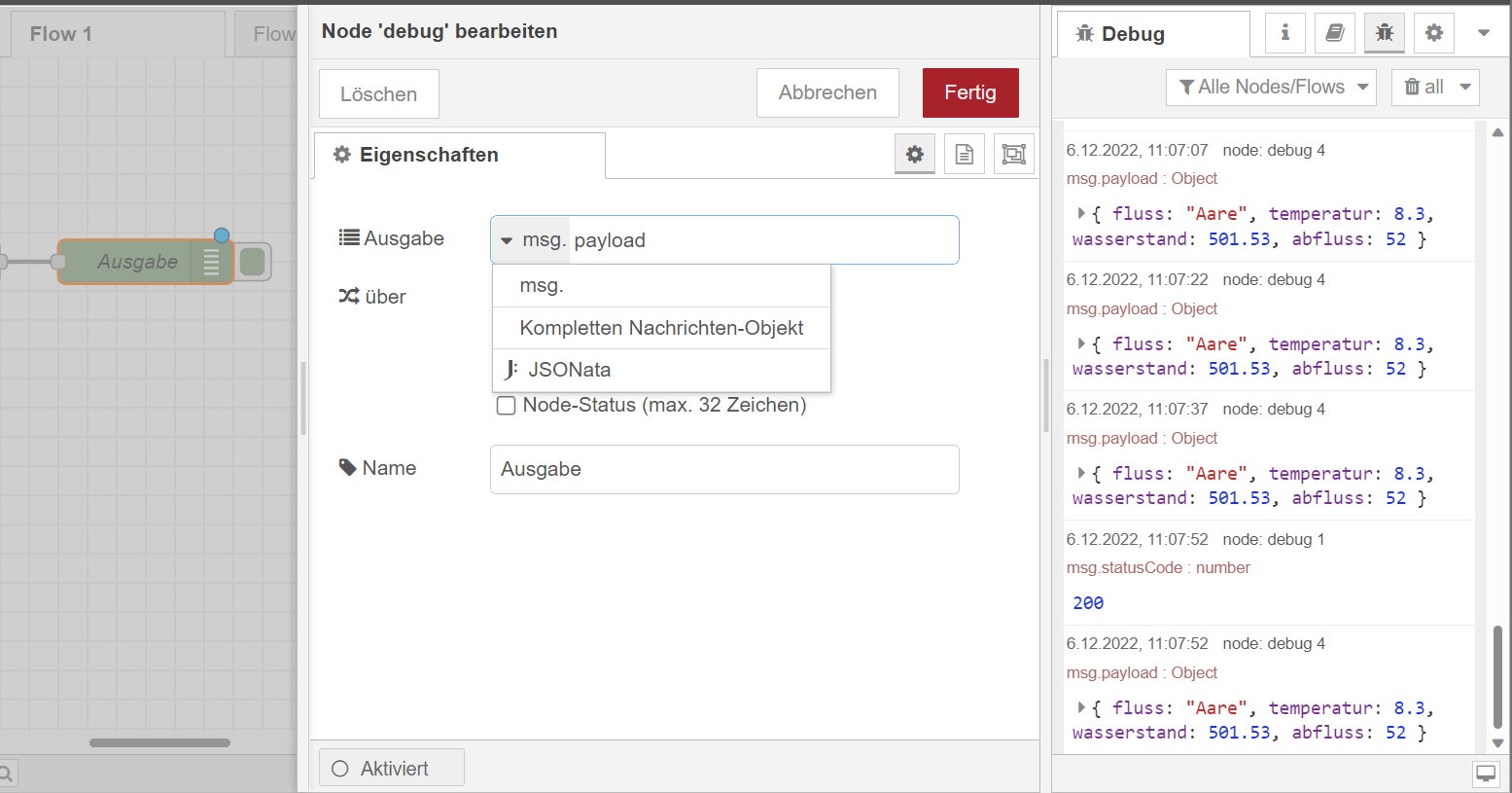 "func": "msg.payload.type = 'message';\nconst aare = flow.get('Aare');\nmsg.payload.content = JSON.stringify(aare);\nmsg.payload.chatId = 99999999;\nreturn msg;",