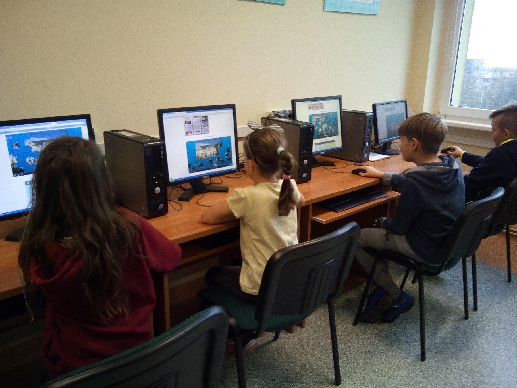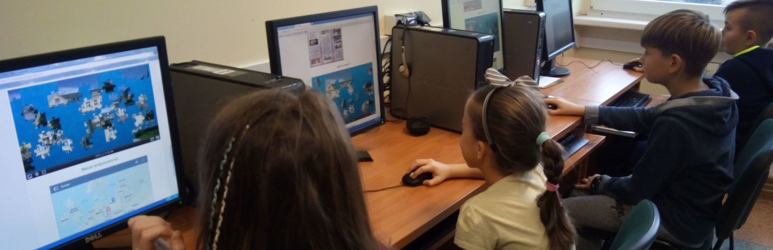 Układamy puzzle wykonane przez partnerów i odgadujemy, jakie to szkoły.