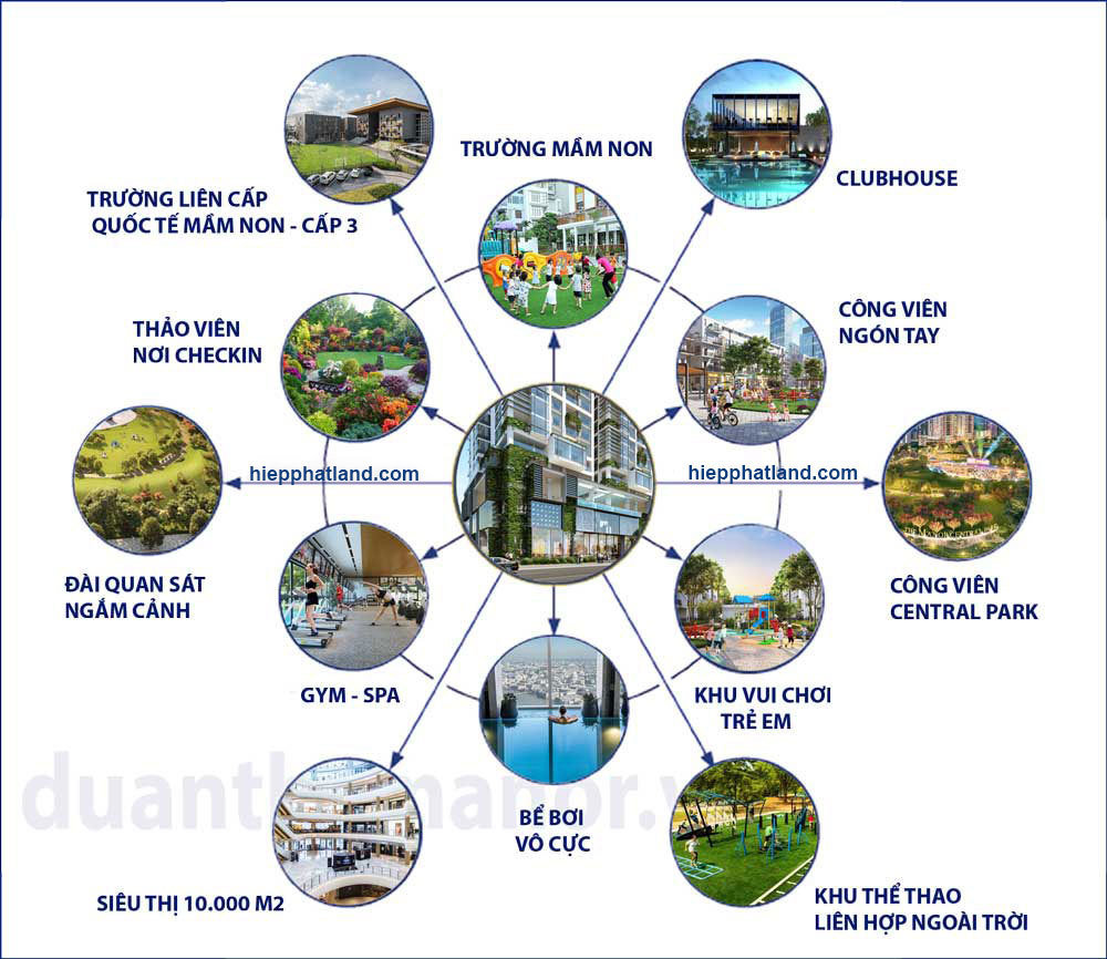 Chung cư The Manor Central Park Nguyễn Xiển được chủ đầu tư tích hợp rất nhiều tiện ích thời thượng bên trong khối đế 3 tầng và cả khuôn viên xung quanh tòa nhà. Như bể bơi vô cực, khu vui chơi cho trẻ nhỏ, khu vườn đi dạo, siêu thị mini, skybar, phòng Gym, Spa, chăm sóc sức khỏe, phòng thư viện, khu sinh hoạt cộng đồng đáp ứng được mọi nhu cầu của quý cư dân tương lai.