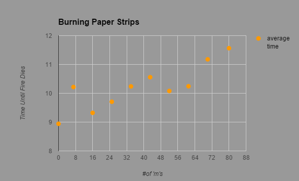 As the amount of ink increased, so did the time it took for the paper to burn
