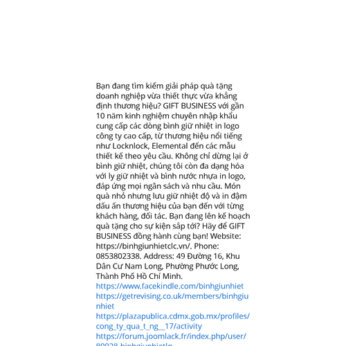 Website: https://binhgiunhietclc.vn/. Bạn đang tìm kiếm giải pháp quà tặng doanh nghiệp vừa thiết thực vừa khẳng định thương hiệu? GIFT BUSINESS với gần 10 năm kinh nghiệm chuyên nhập khẩu cung cấp các dòng bình giữ nhiệt in logo công ty cao cấp, từ