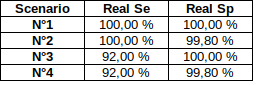 The 4 scenarii for Se and Sp