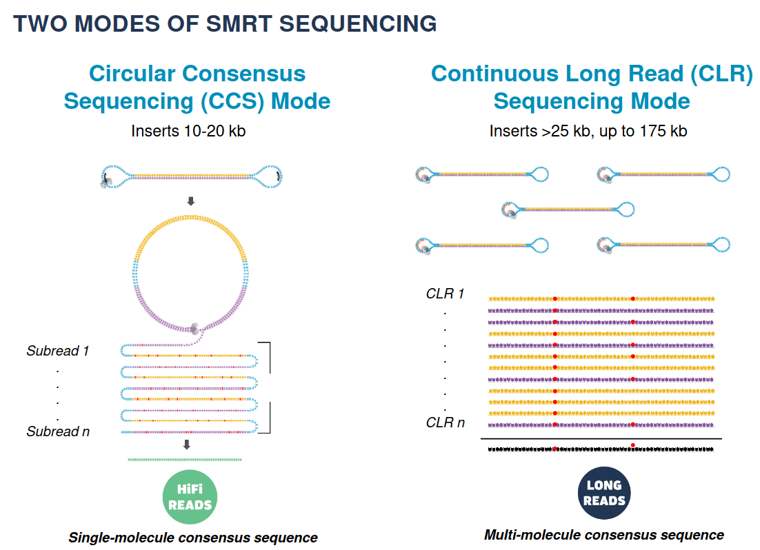 Because our inserts are circular and shorts, we can make CCS of high accuracy despite a 15% error-rate in the subreads