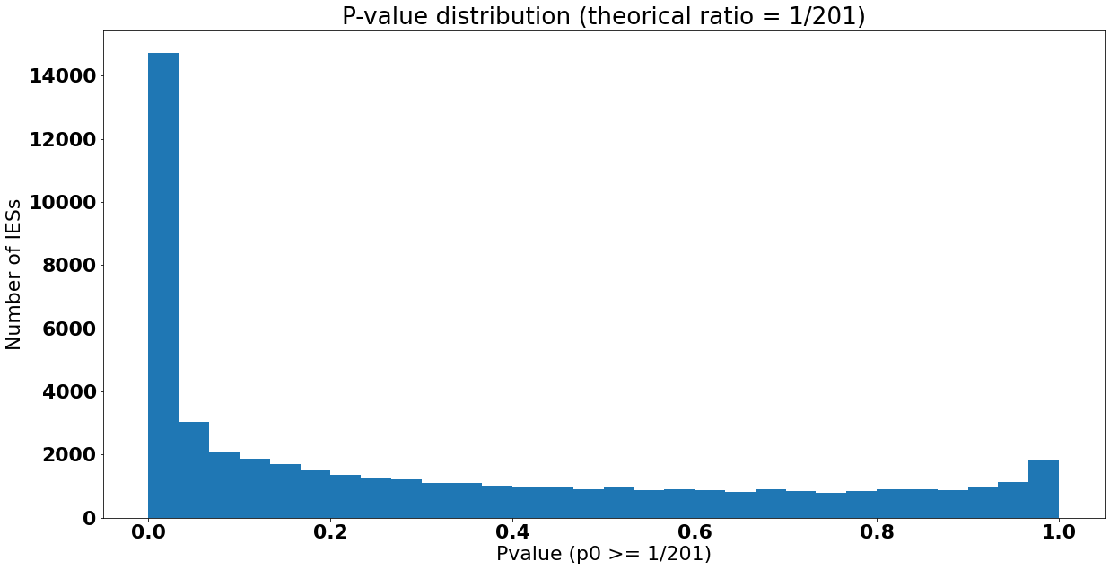 Experimental distribution of \( \frac{nbIES+}{total\ reads} \)