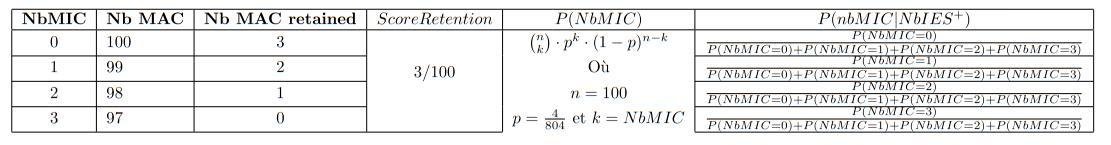 - Plus précisément : \( P(MIC|IES^+) = 50\%) \)