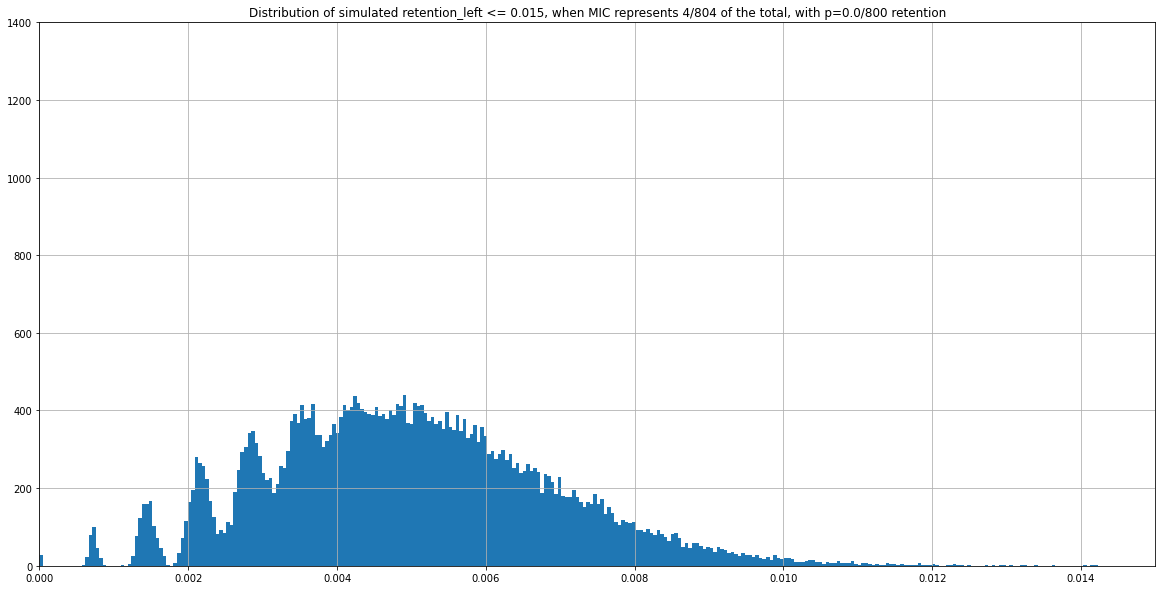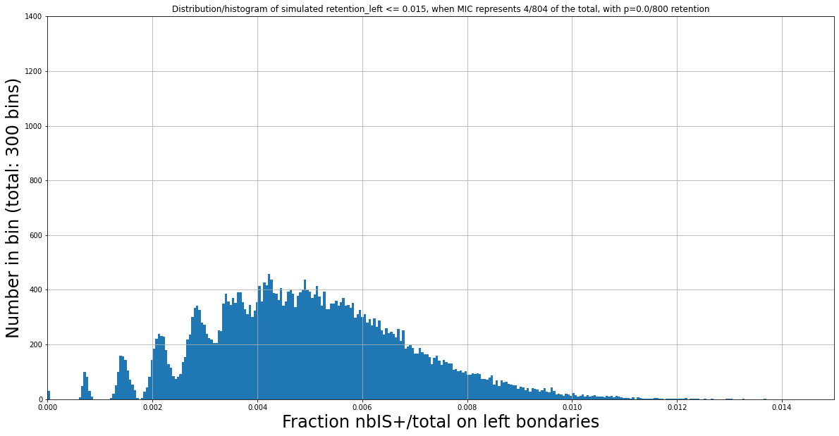 (Zoomed) Expected distribution of \(\frac{nbIES+}{total\ reads} \) with Monte Carlo simulation, when P(MIC) = 4/804