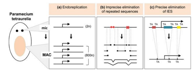 After sexual processes, a new MAC is formed, with important genome re-arrangements