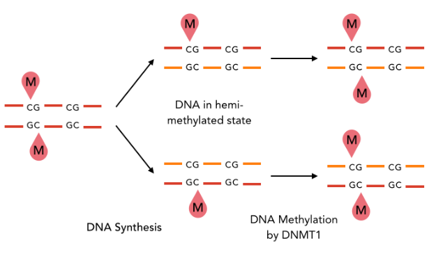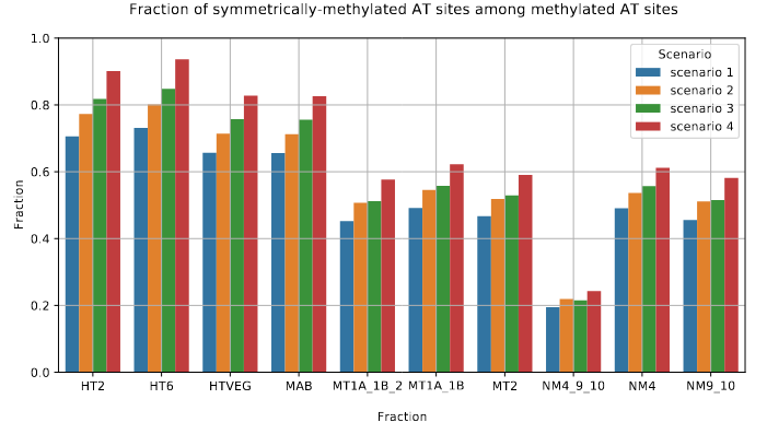 - Symmetrical methylation of AT sites + a few de novo hemi-methylation