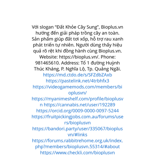 Website: https://bioplus.vn/. Bioplus.vn không chỉ là nơi cung cấp phân bón, mà còn là người bạn đồng hành trong hành trình canh tác xanh. Với slogan “Đất Khỏe Cây Sung”, sản phẩm giúp cải tạo đất lâu dài và giúp cây xanh bền. Đó là giá trị bền vững