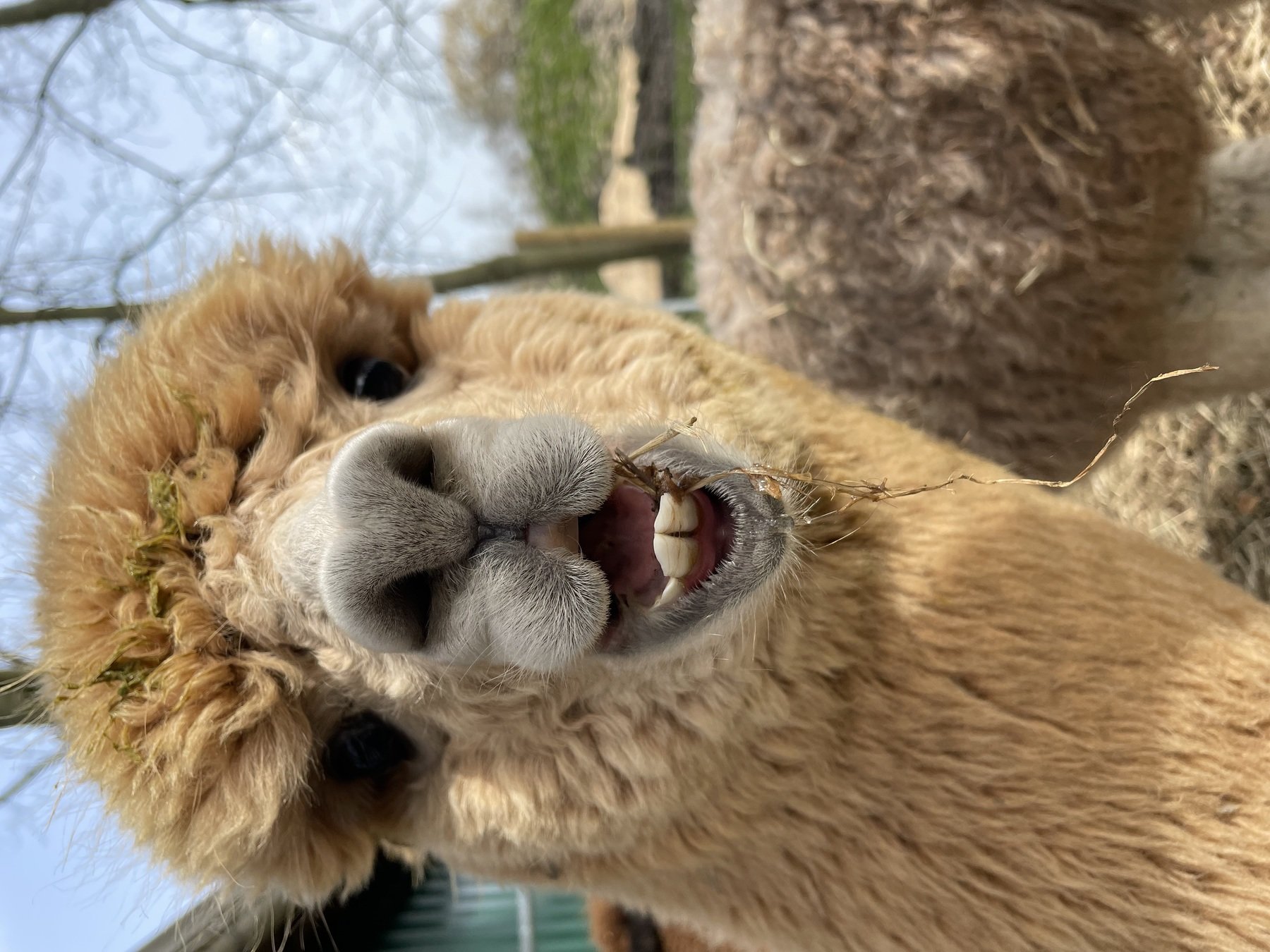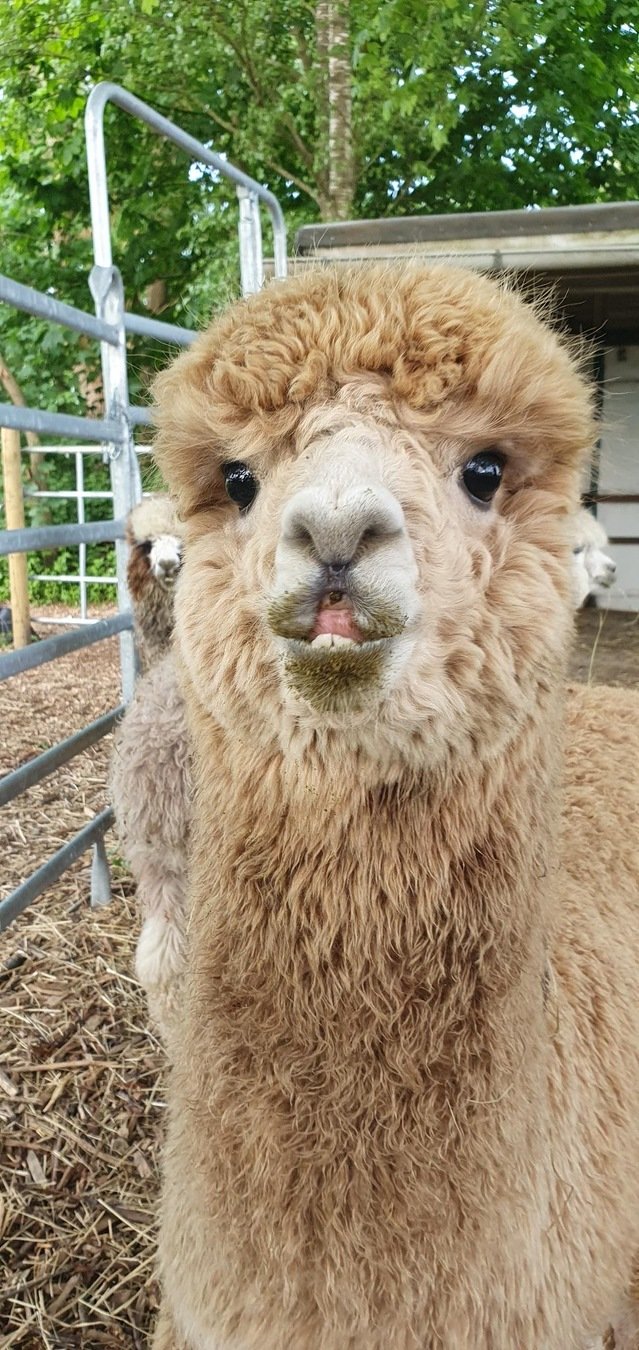 Alpakas spucken u.a. im Rahmen von Dominanzverhalten, aber nicht absichtlich gegenüber Menschen. Wenn sie sich gegenseitig im Streit bespucken zeigen sie eine sogenannte "Ekelgebärde" (offenes Maul, Speichelfluss).