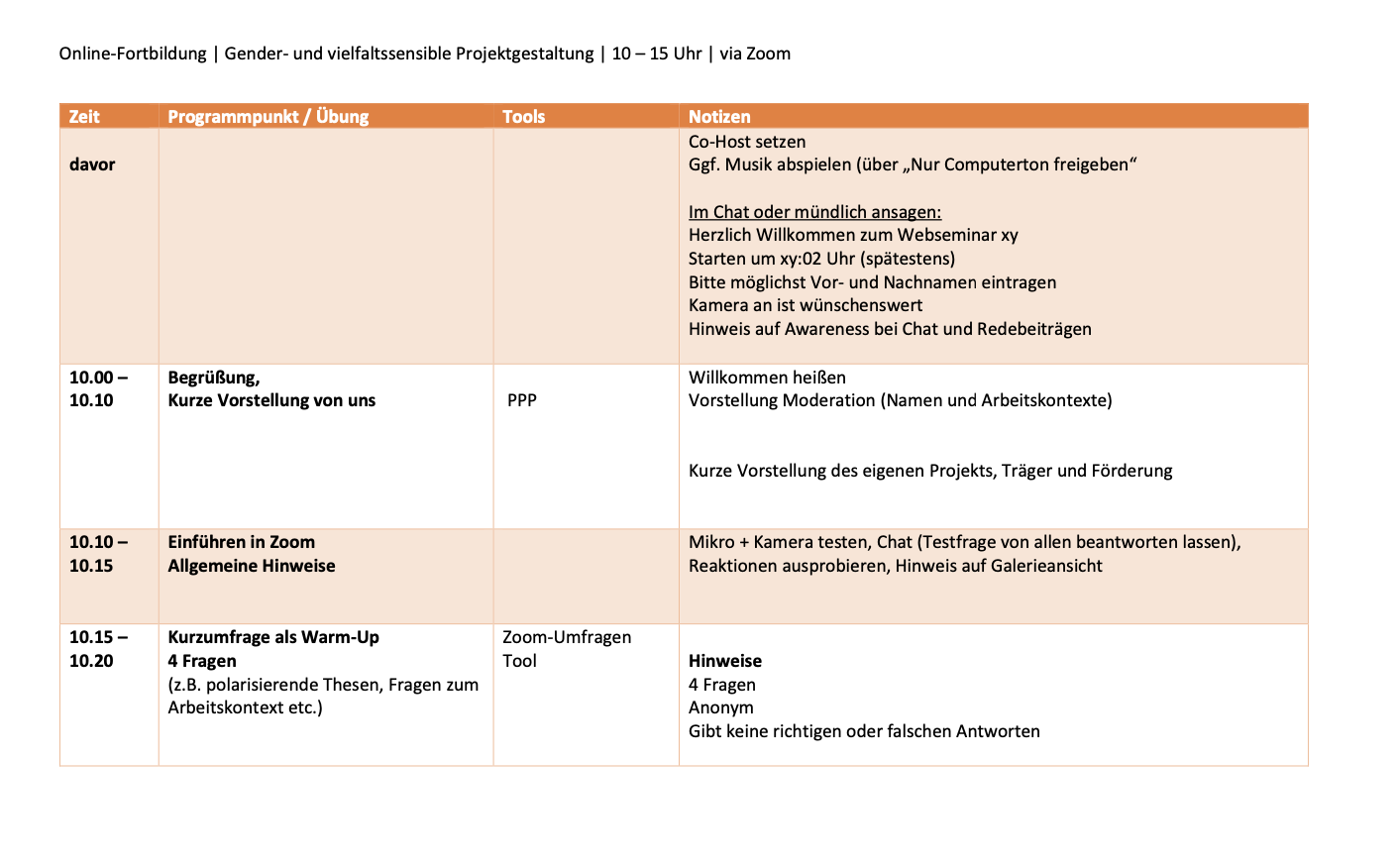 - Ablauf, Gesprächsregeln & Netiquette, eigene Haltung