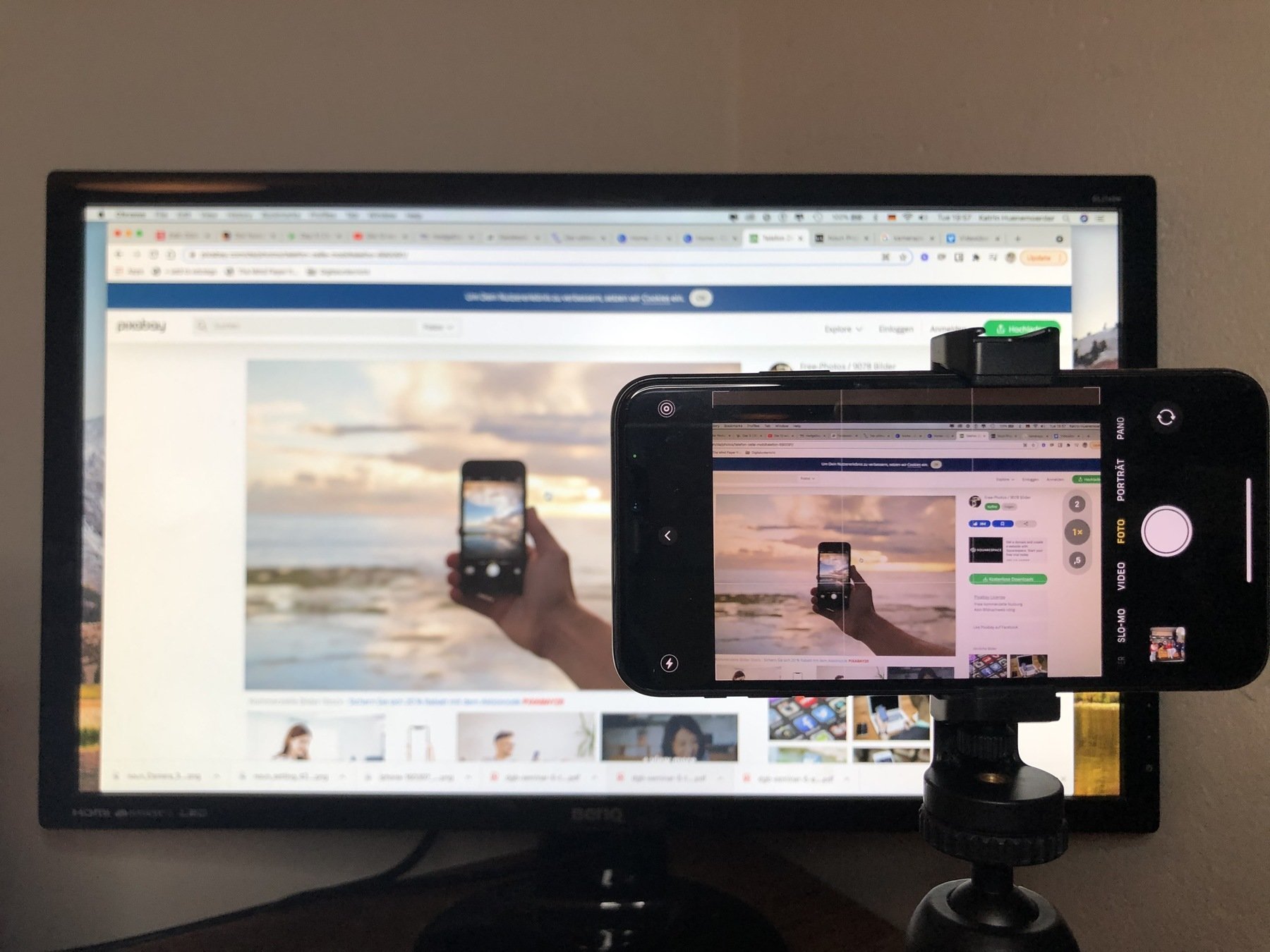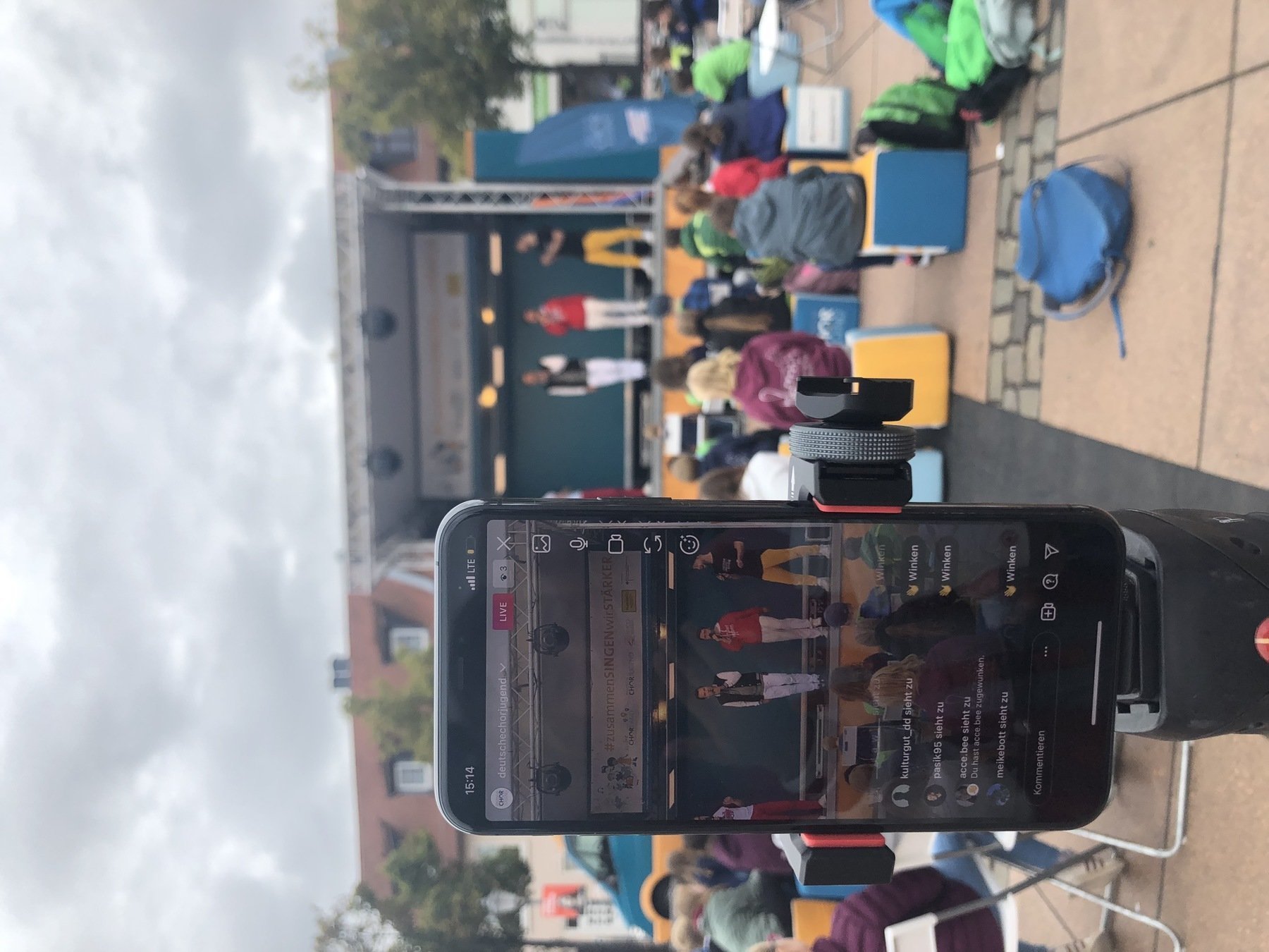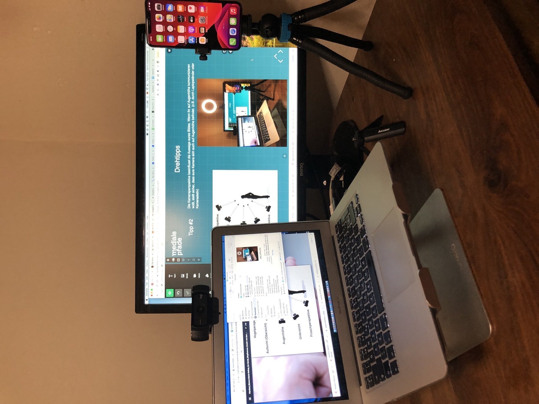 Entscheide VOR dem Dreh, ob du im Hoch- oder im Querformat drehst (besonders wichtig, wenn mehrere Leute drehen). Für YouTube Querformat; für Instagram und Facebook Stories, Reels Hochformat, für Facebook ist beides möglich).