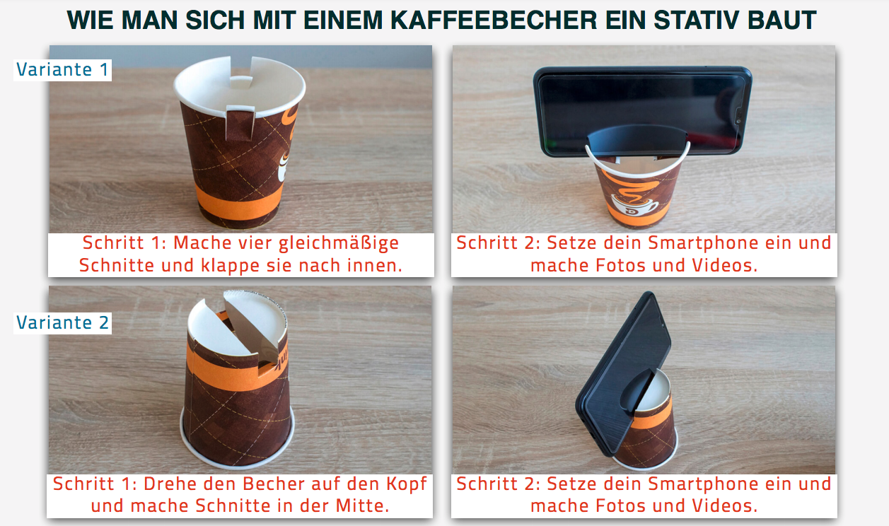 Die Kameraperspektive beeinflusst die Aussage des Bildes. Wenn du auf Augenhöhe kommunizieren willst stelle sicher, dass die Kamera sich auch auf Augenhöhe befindet.