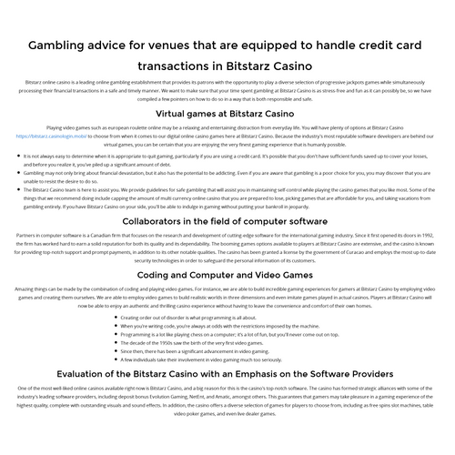 Gambling advice for venues that are equipped to handle credit card transactions in Bitstarz Casino