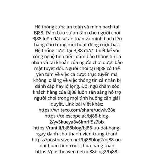 Website: https://bj88blog2.mystrikingly.com/blog/bj88-san-ch-i-d-i-th-ng-an-toan-va-nhanh-chong Hệ thống cược an toàn và minh bạch tại BJ88: Đảm bảo sự an tâm cho người chơi BJ88 luôn đặt sự an toàn và minh bạch lên hàng đầu trong mọi hoạt động cược